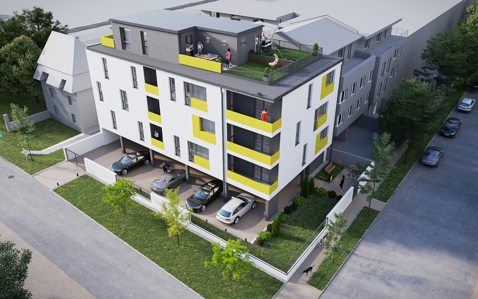 Az épület vízzáró vasbeton alapozással, monolit vasbeton szerkezetekkel és korszerű hangszigetelő falazatokkal készül, garantálva a biztonságot és a nyugalmat.