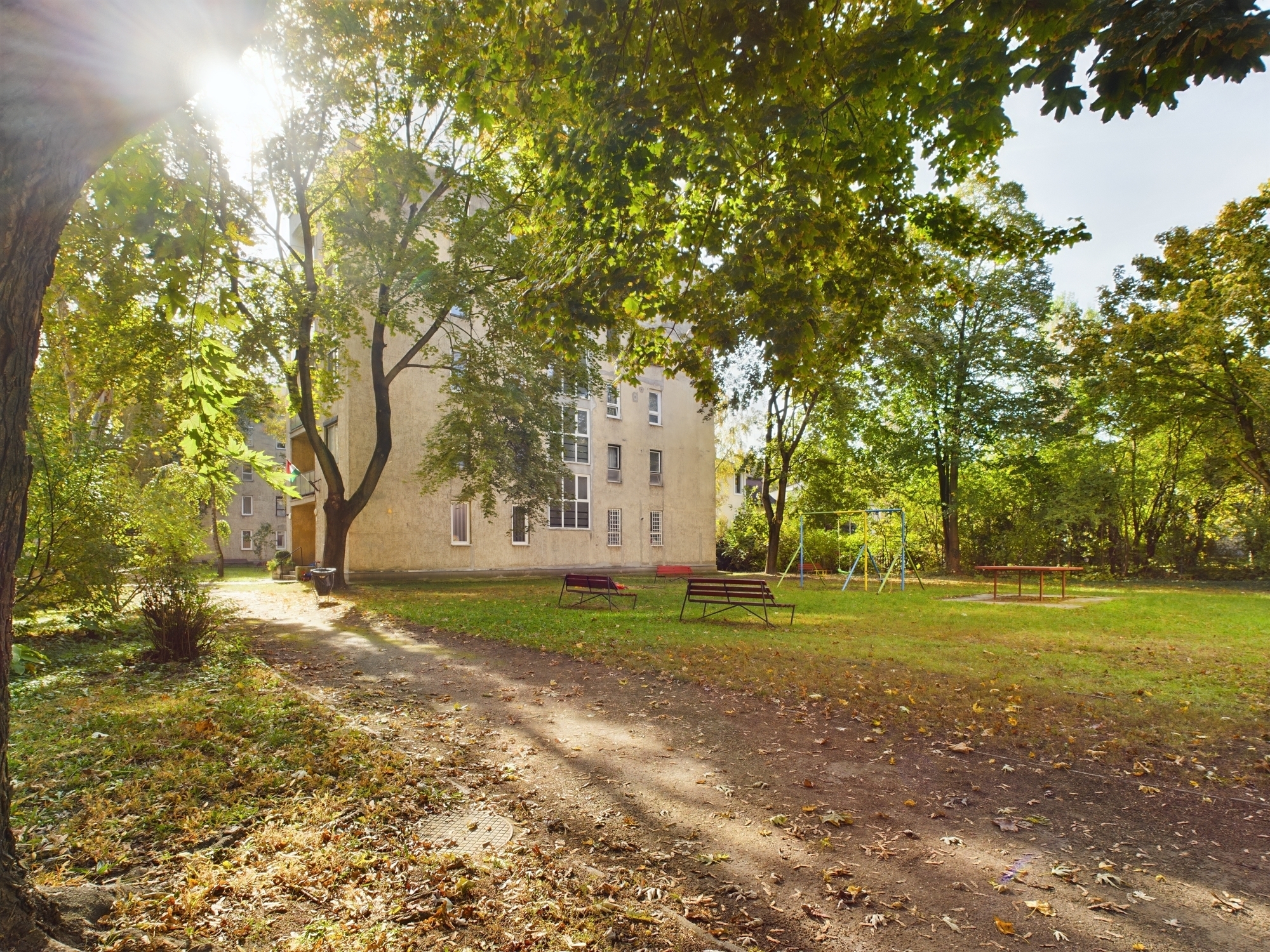 A Kalap utcai házakat körbeveszi egy kerítéssel védett, rendezett, ősfás park, saját játszótérrel.