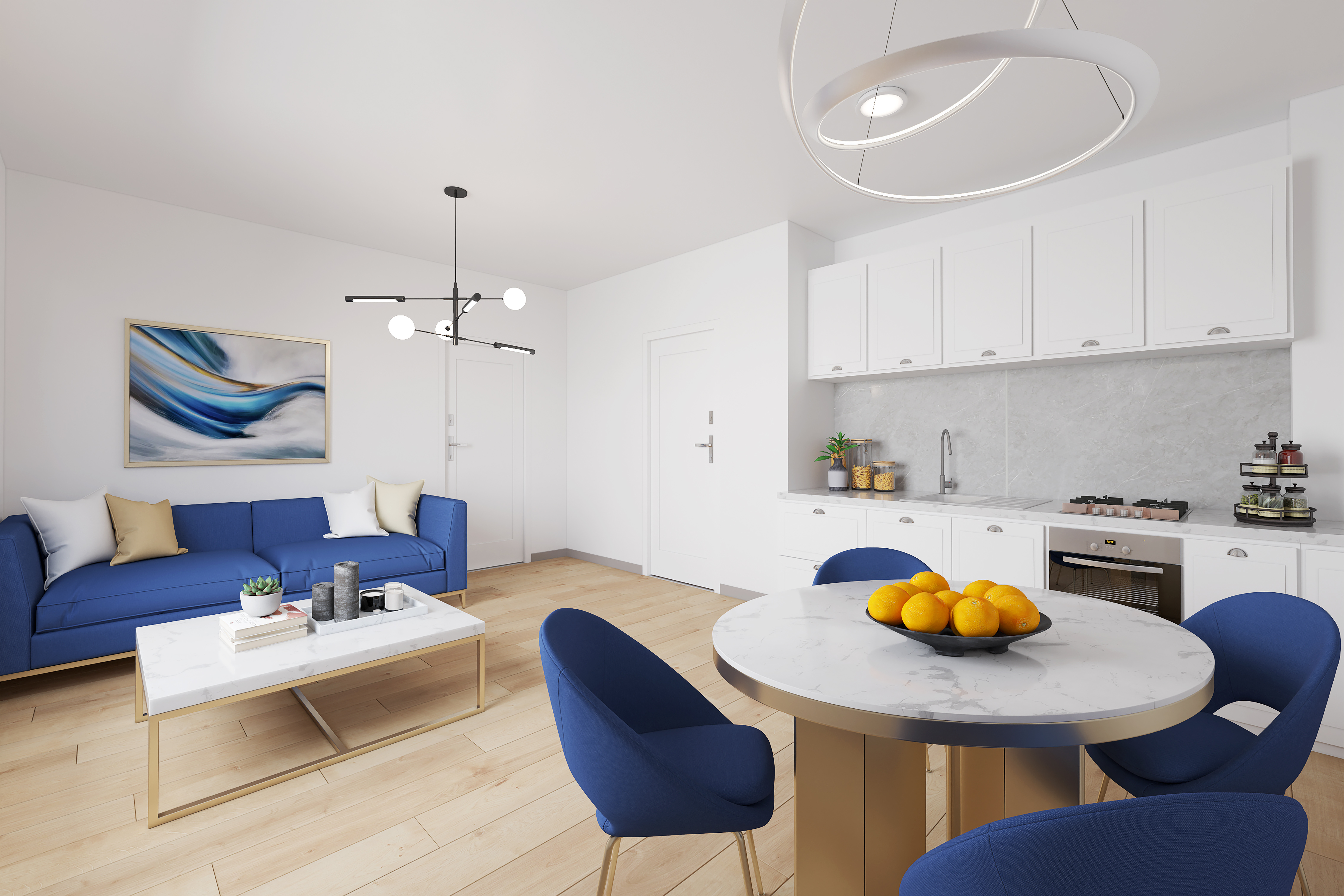 (The pictures of the virtual interior are based on the planned layout of the apartments.)