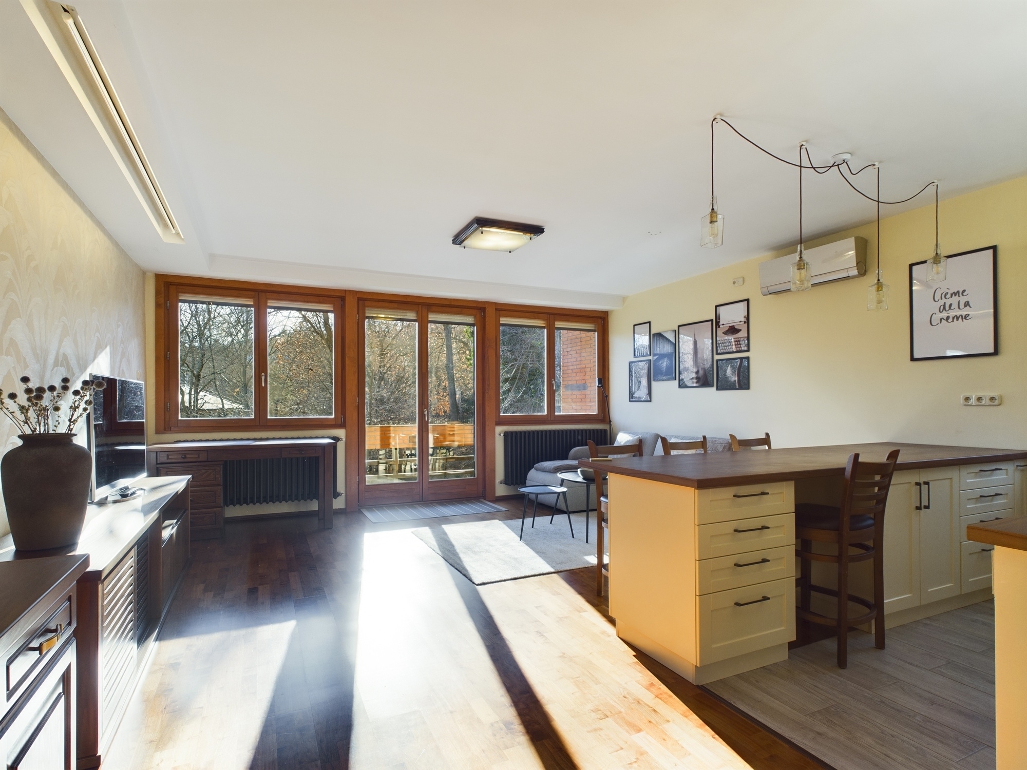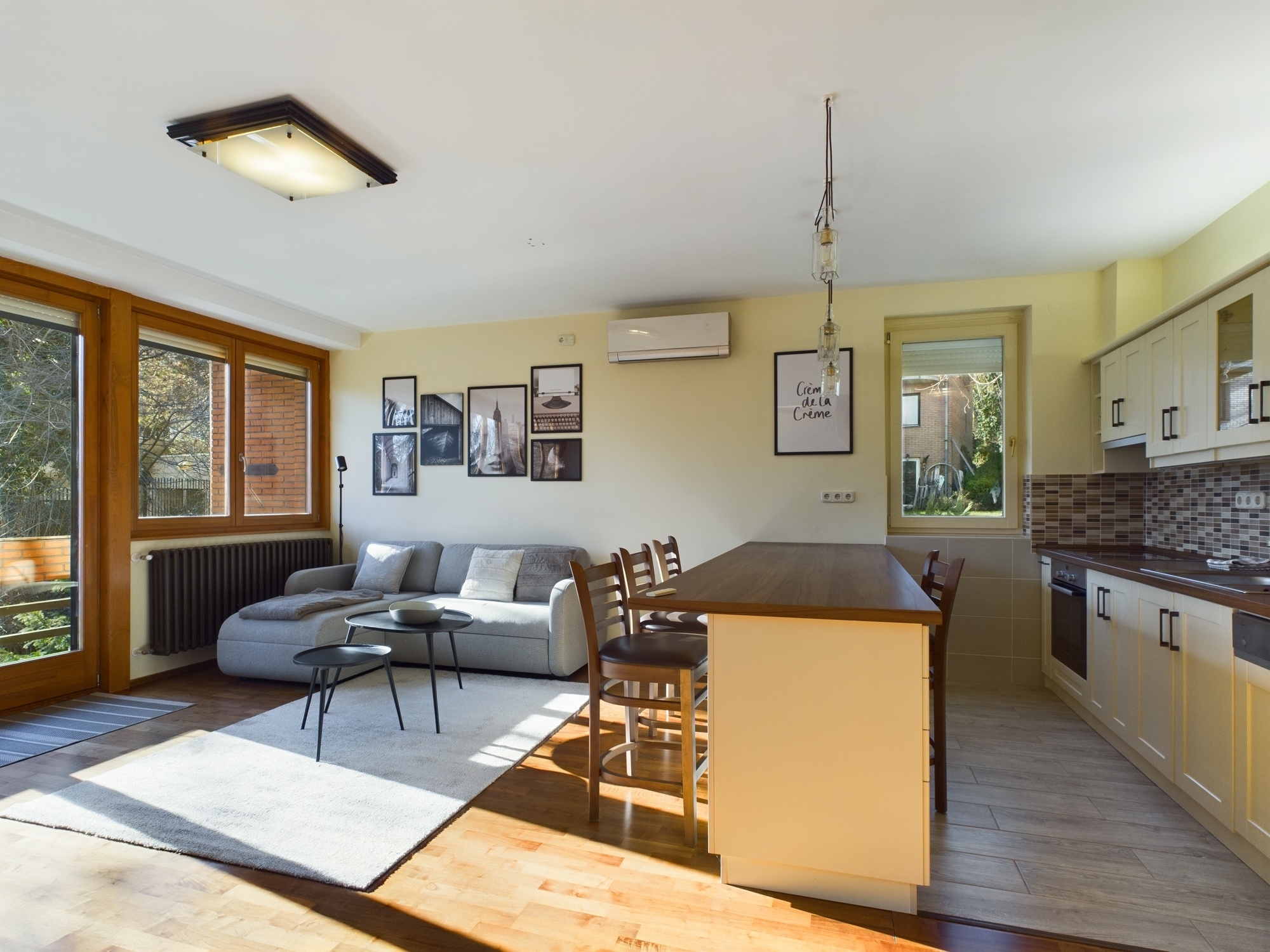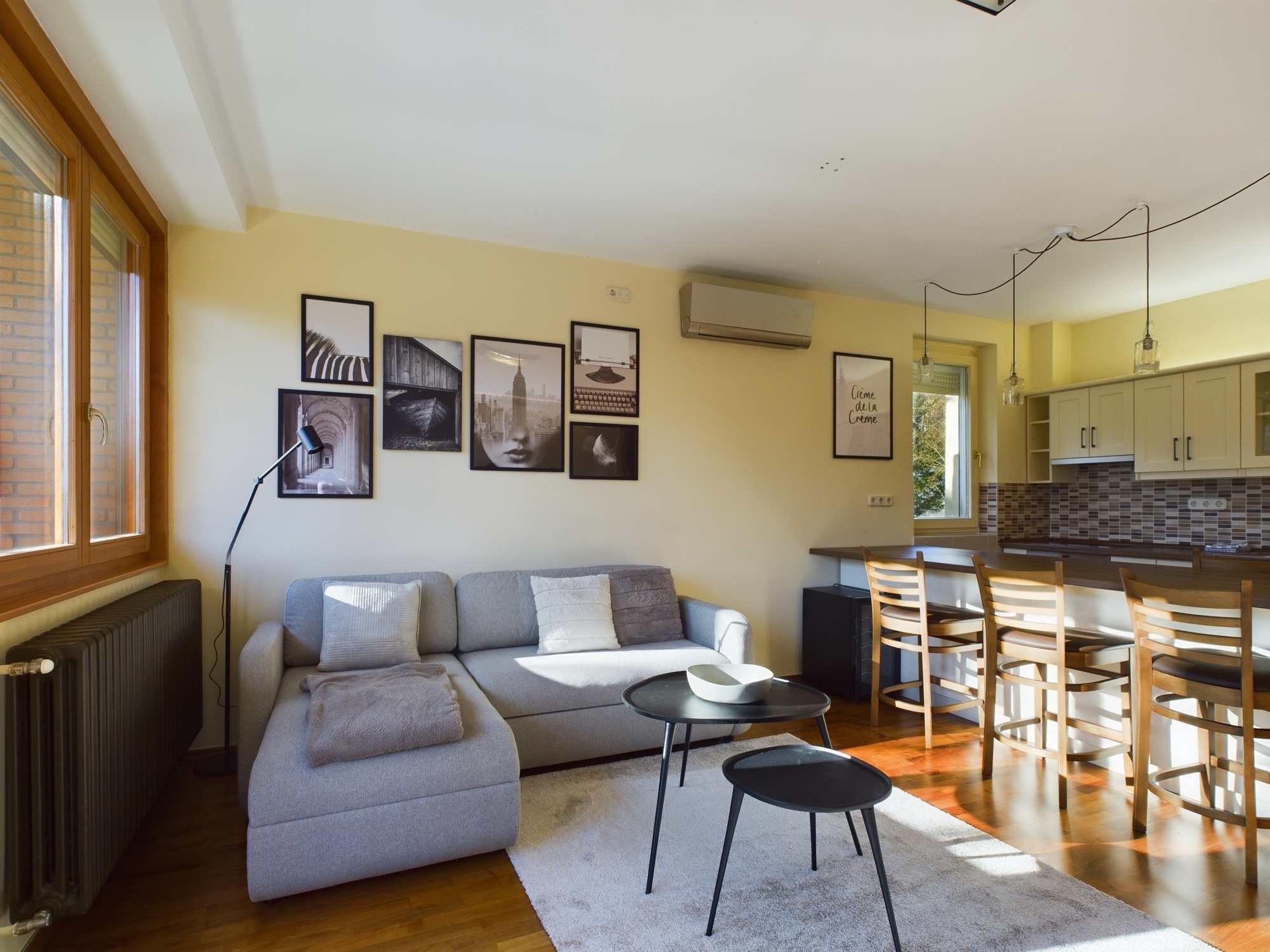 A lakás néhány évvel ezelőtt esztétikai felújításon esett át, teljes mértékben bútorozott, kifejezetten megkímélt, szép állapotban található, klímával és elektromos redőnnyel felszerelt, biztonsági ajtóval ellátott.