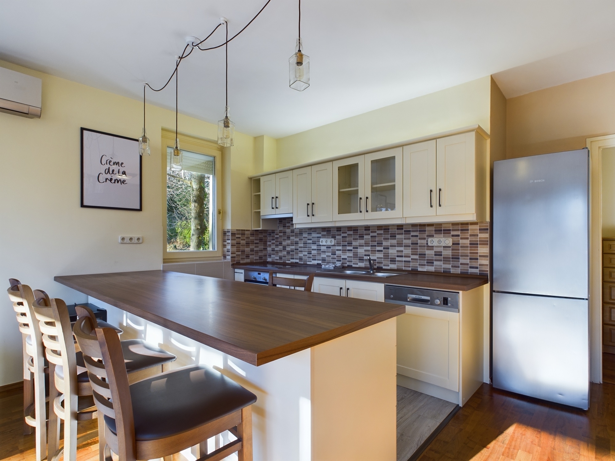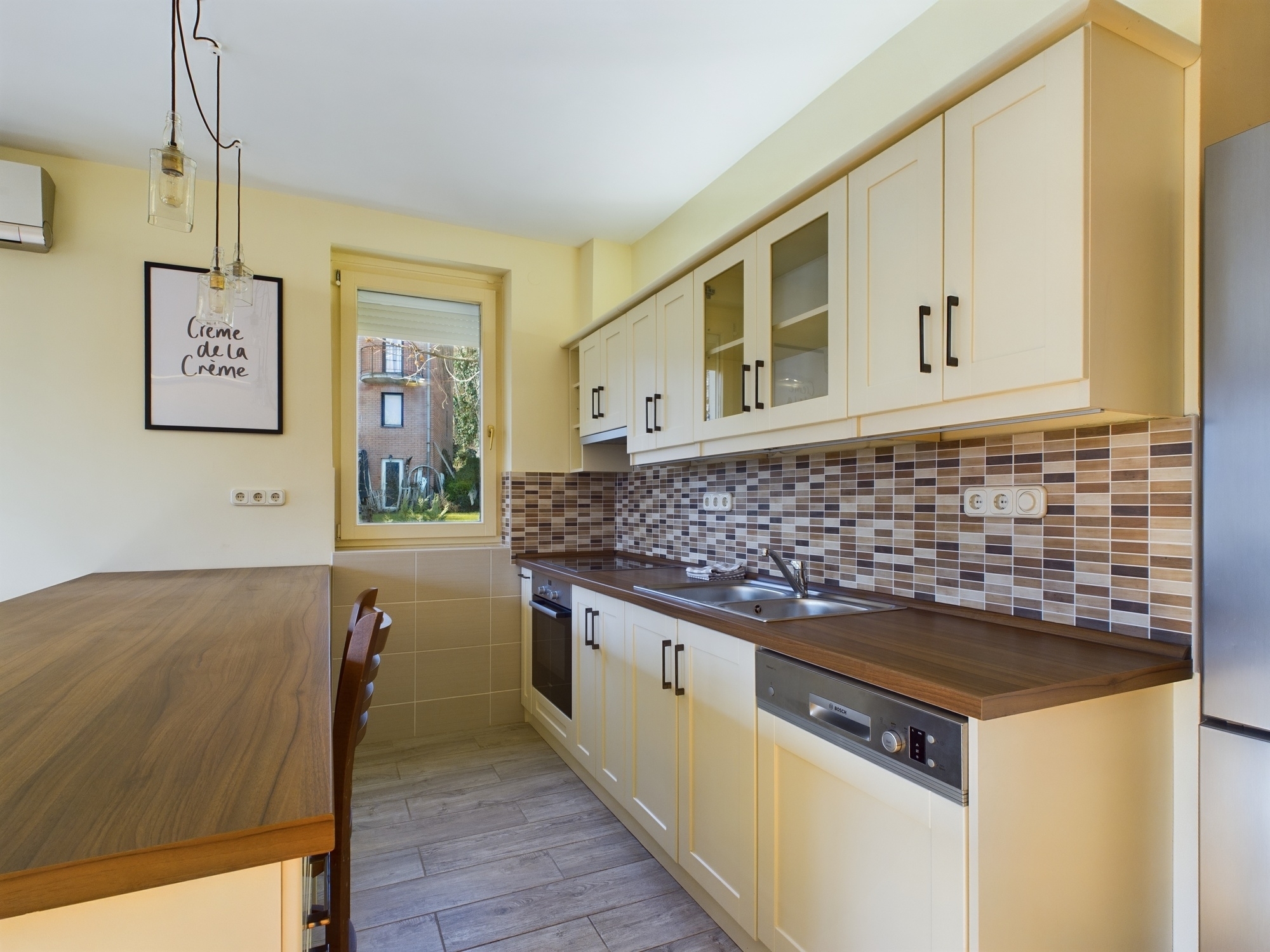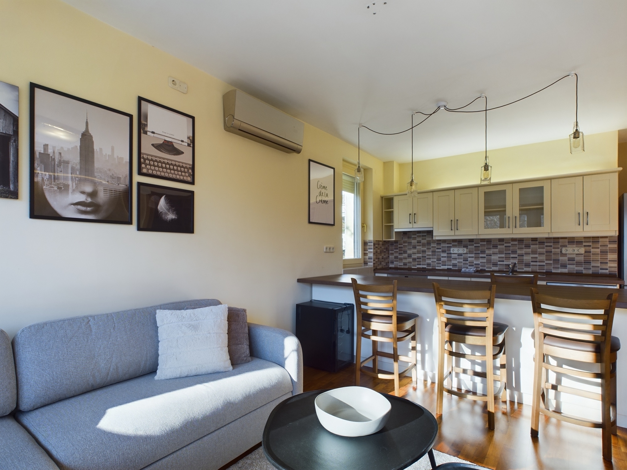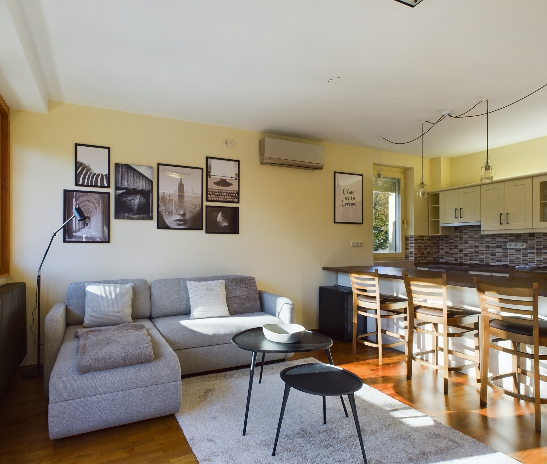 A lakás néhány évvel ezelőtt esztétikai felújításon esett át, teljes mértékben bútorozott, kifejezetten megkímélt, szép állapotban található, klímával és elektromos redőnnyel felszerelt, biztonsági ajtóval ellátott.