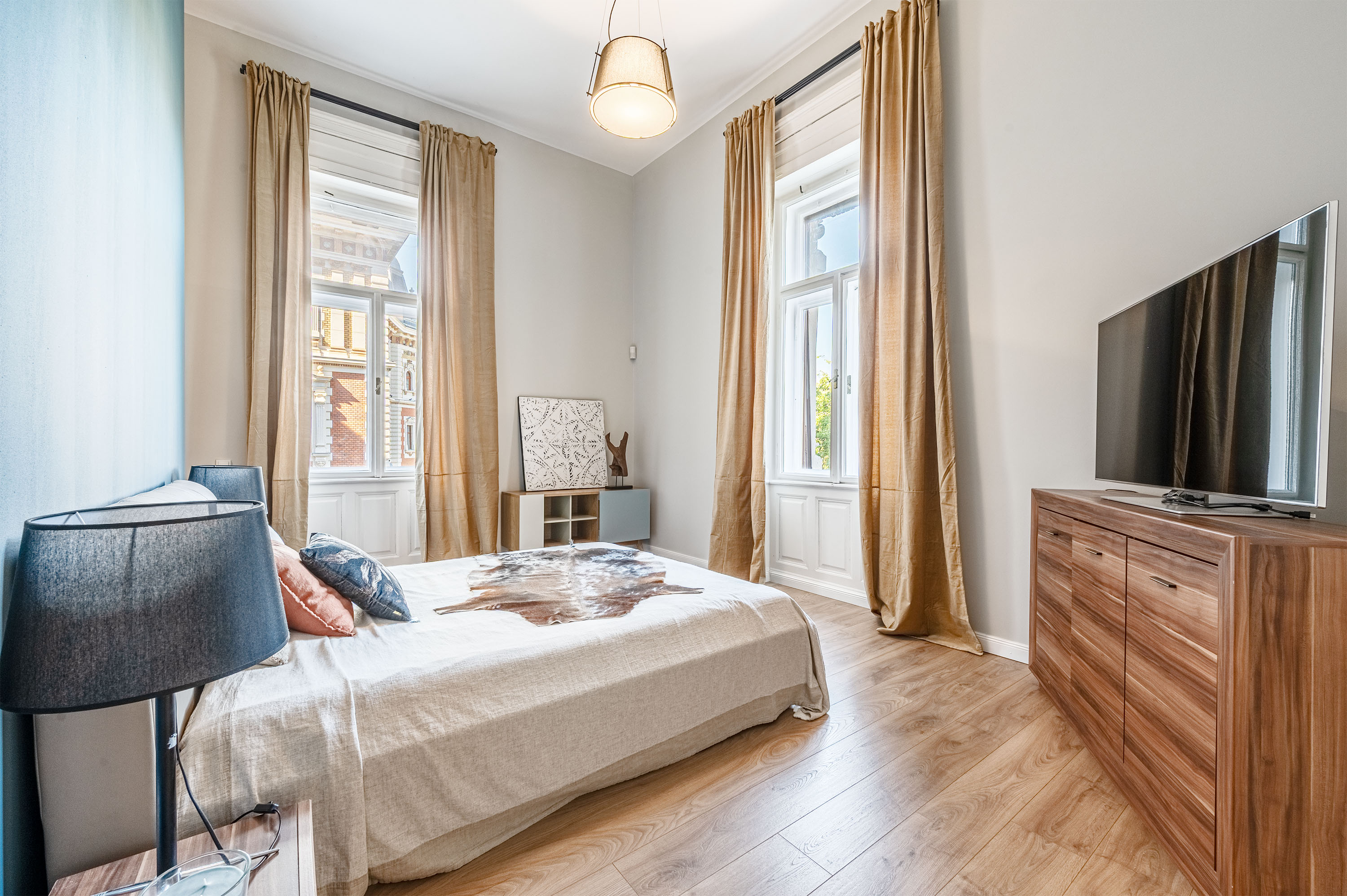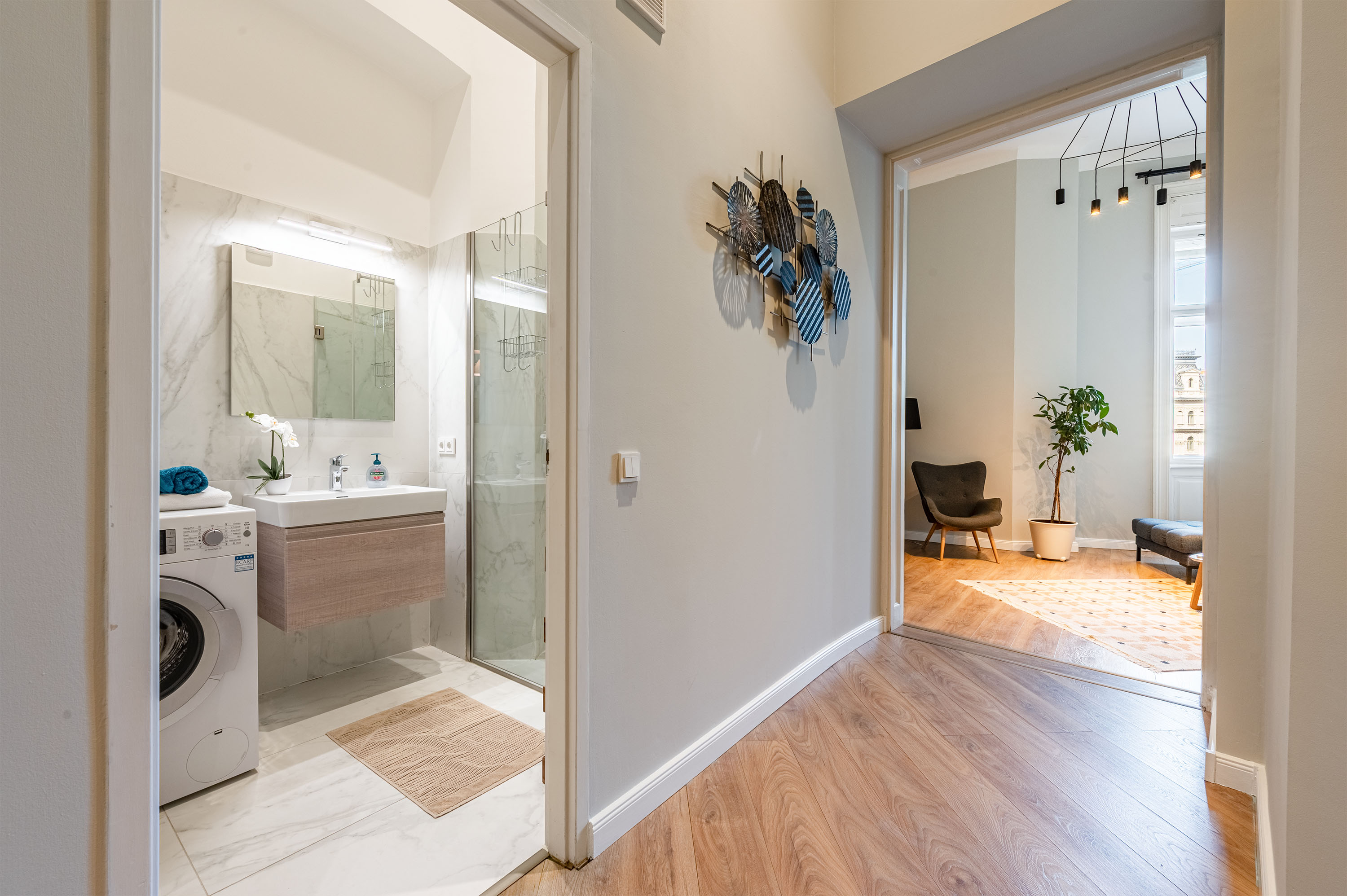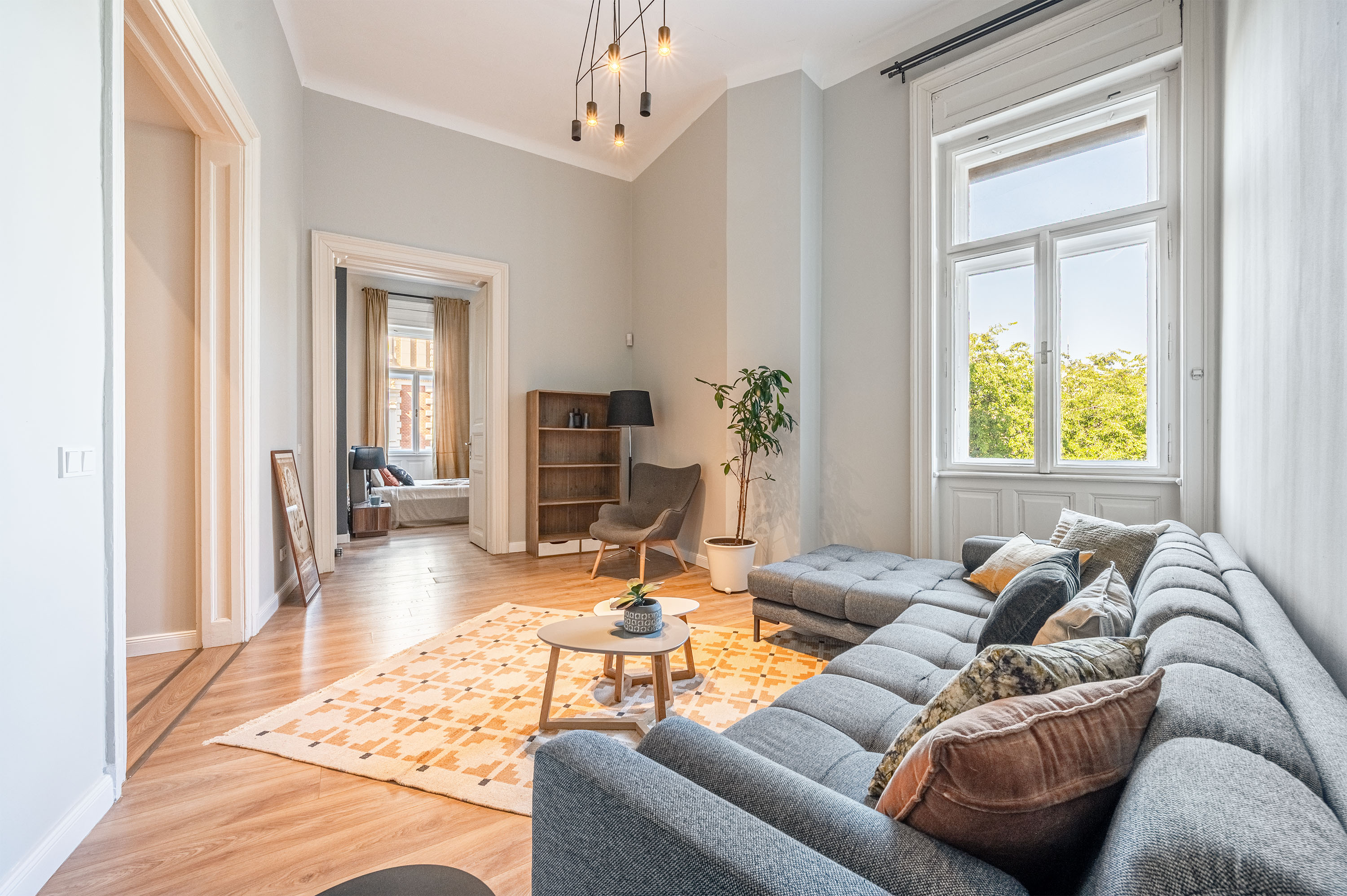 Bérelje ki ezt a teljesen felszerelt 78 négyzetméteres, prémium minőségben felújított lakást, Budapest legelegánsabb palotájában, az Andrássy úti Körönd Palace-ban!
