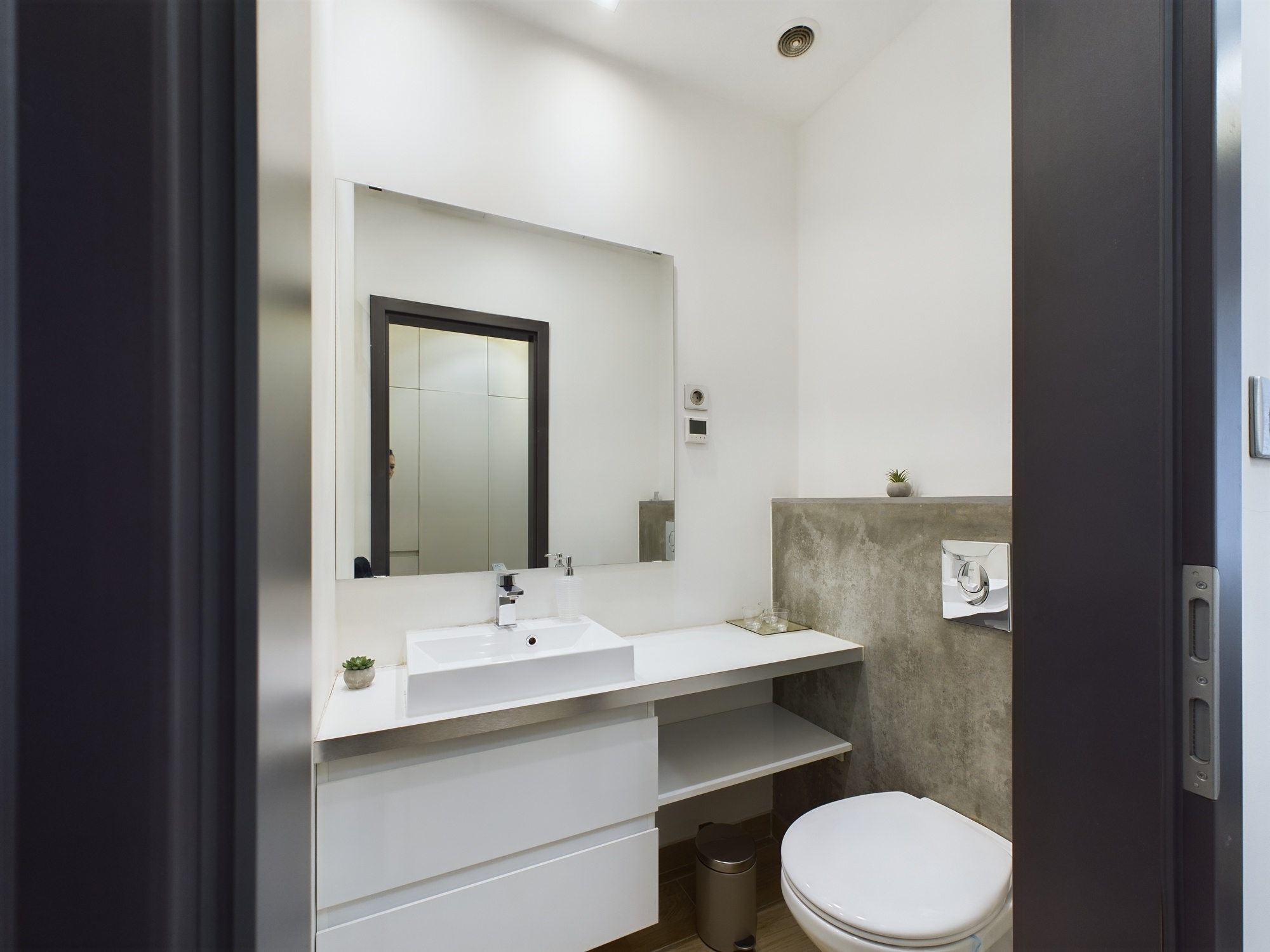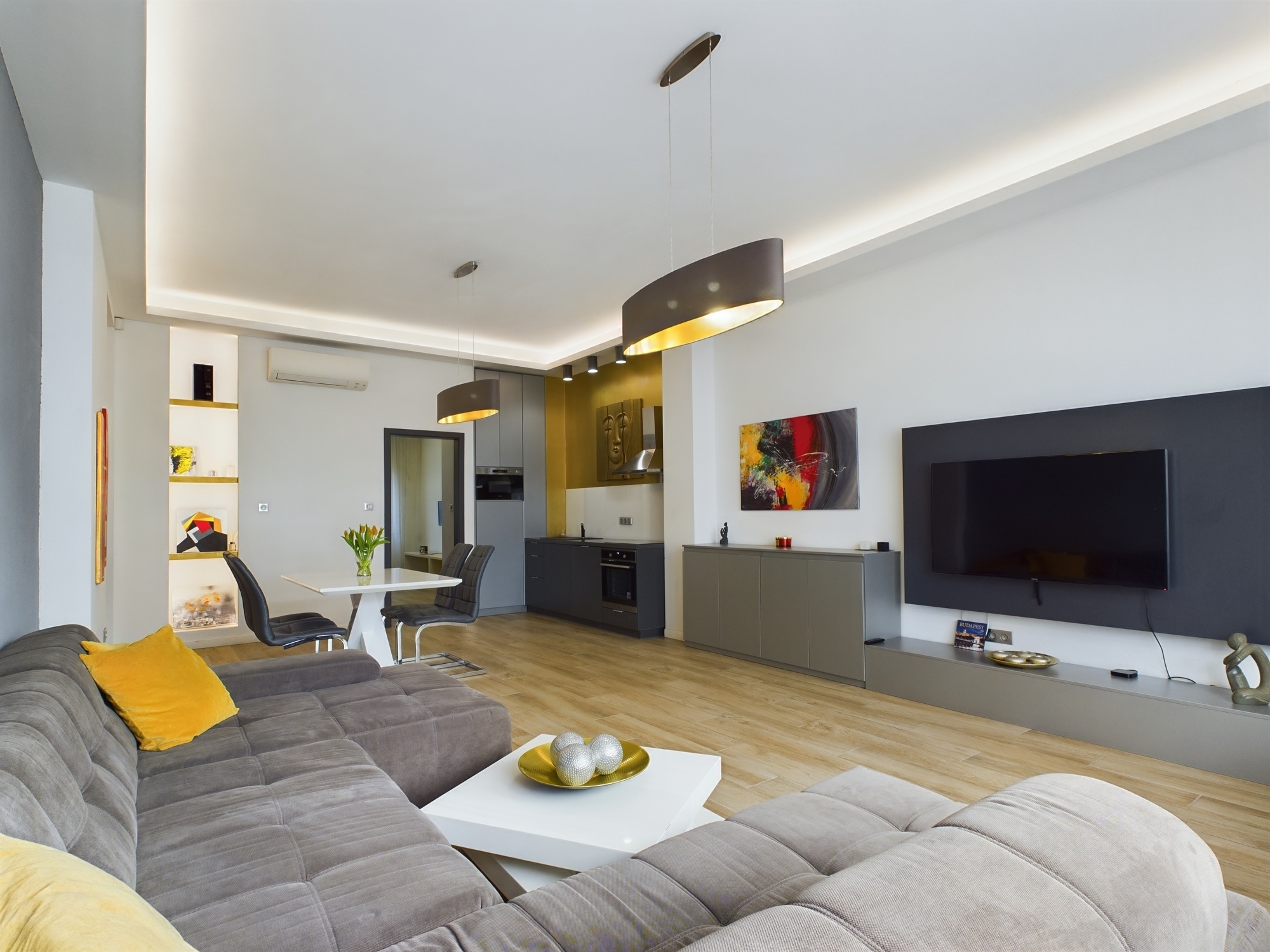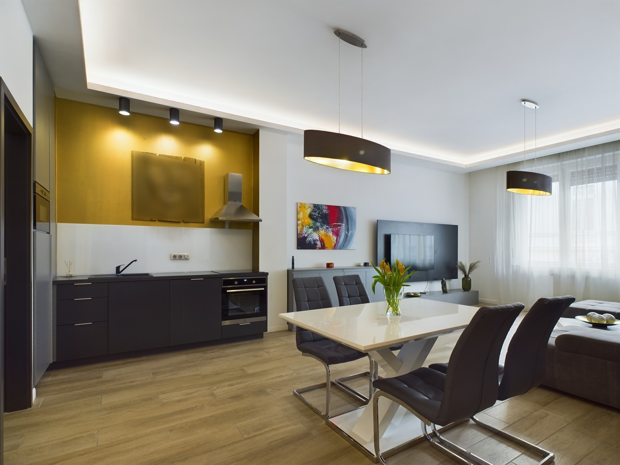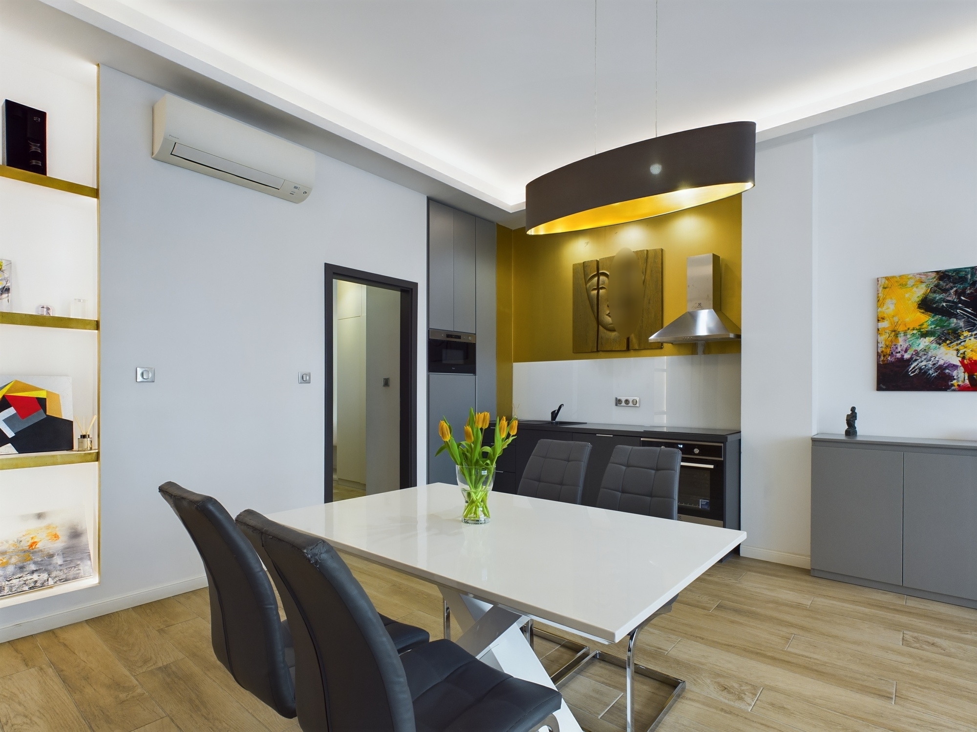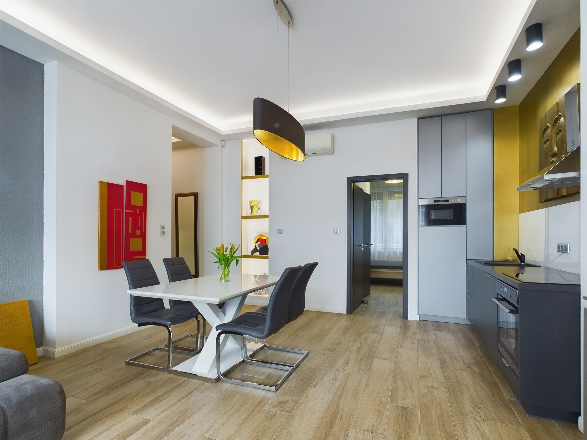 Az első emeleten lévő 83 nm-es lakás az elhelyezkedésének köszönhetően világos. Az ingatlan 2015-ban teljeskörű műszaki és esztétikai felújításon esett át. A tulajdonos kifejezetten ügyelt a prémium minőségű kivitelre.