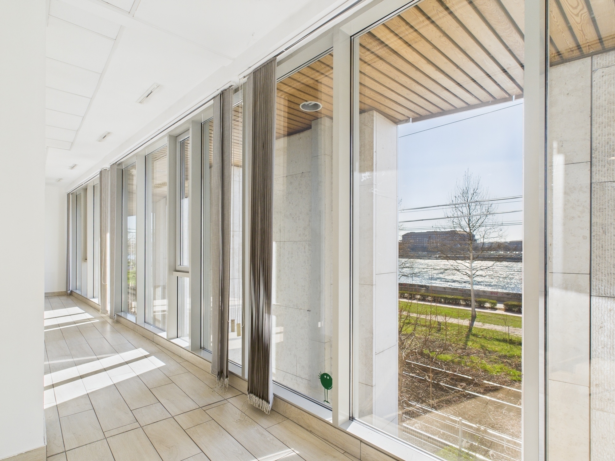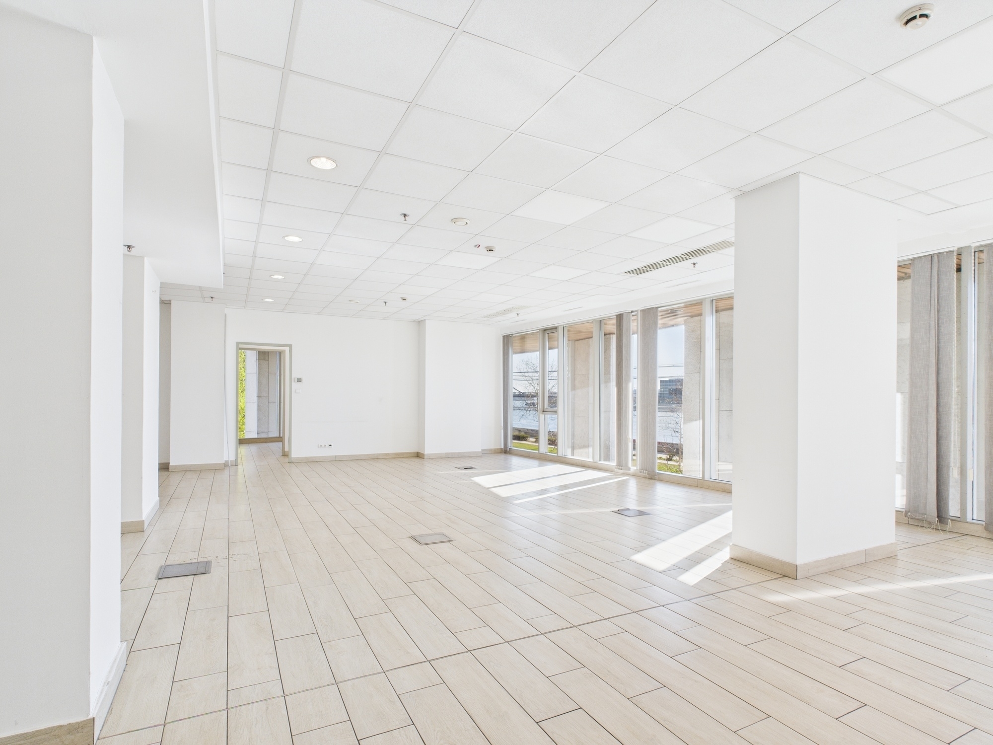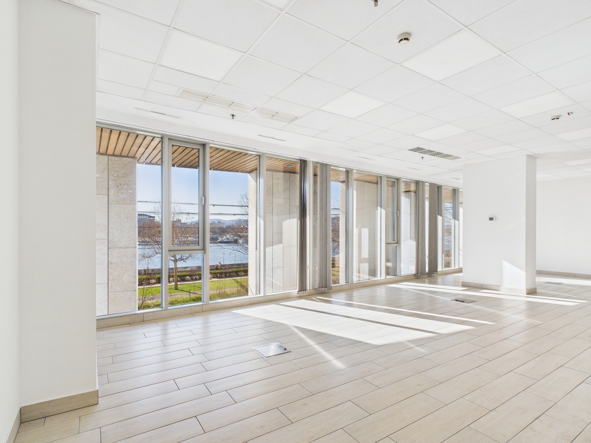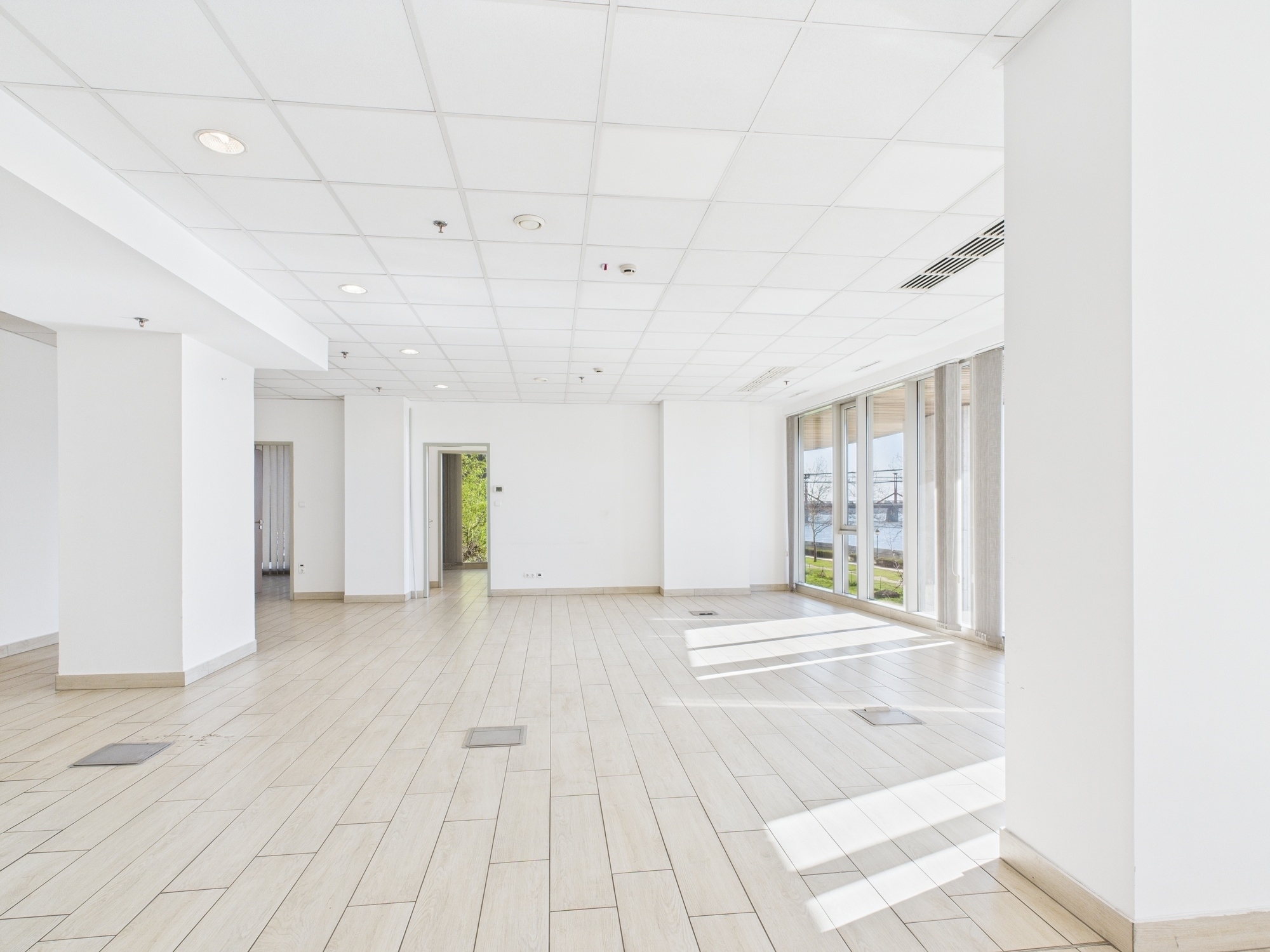 A hirdetésben szereplő dunai panorámás iroda a C lépcsőház első emeletén található, két albetétből került összenyitásra, összesen 170 nm.