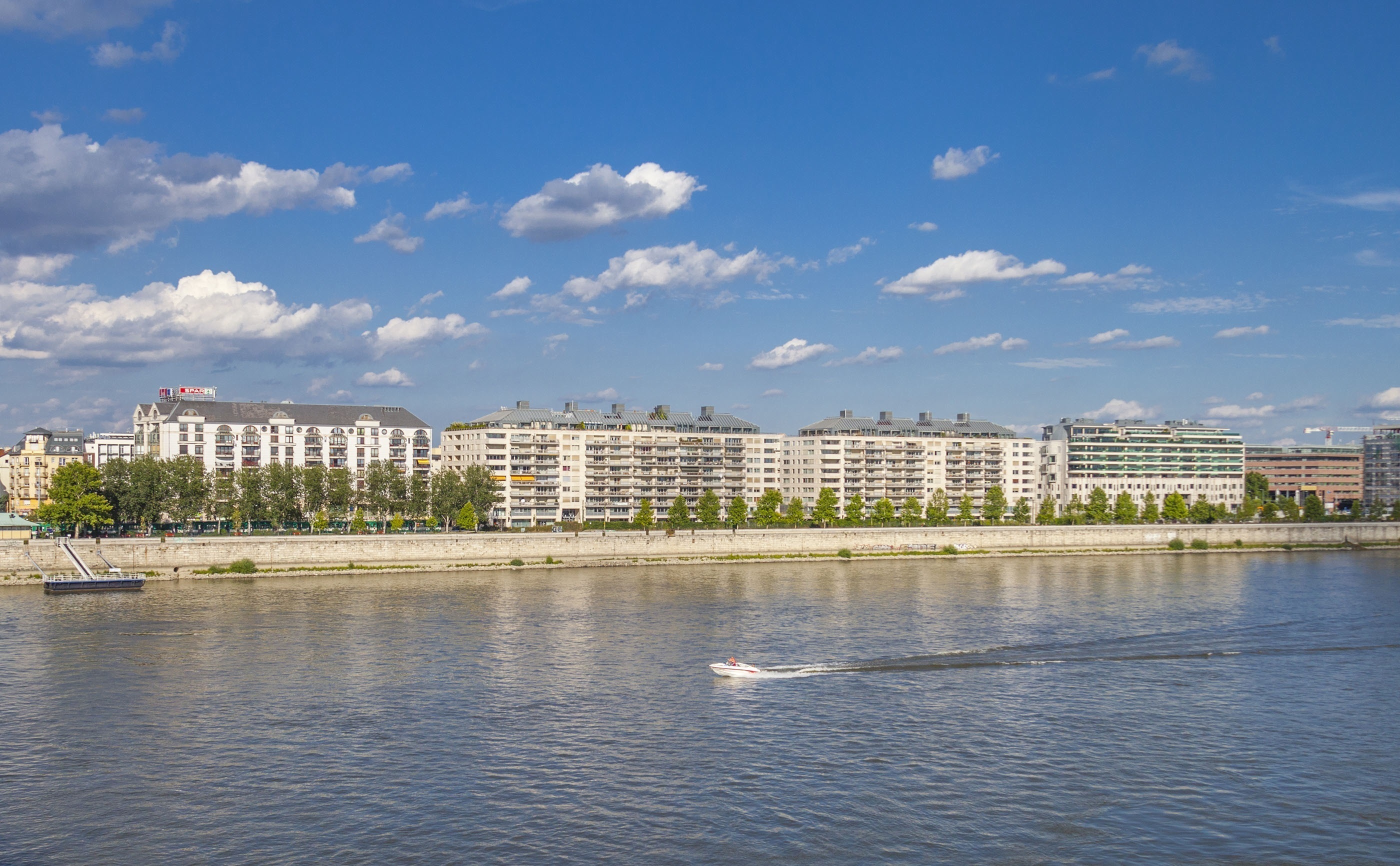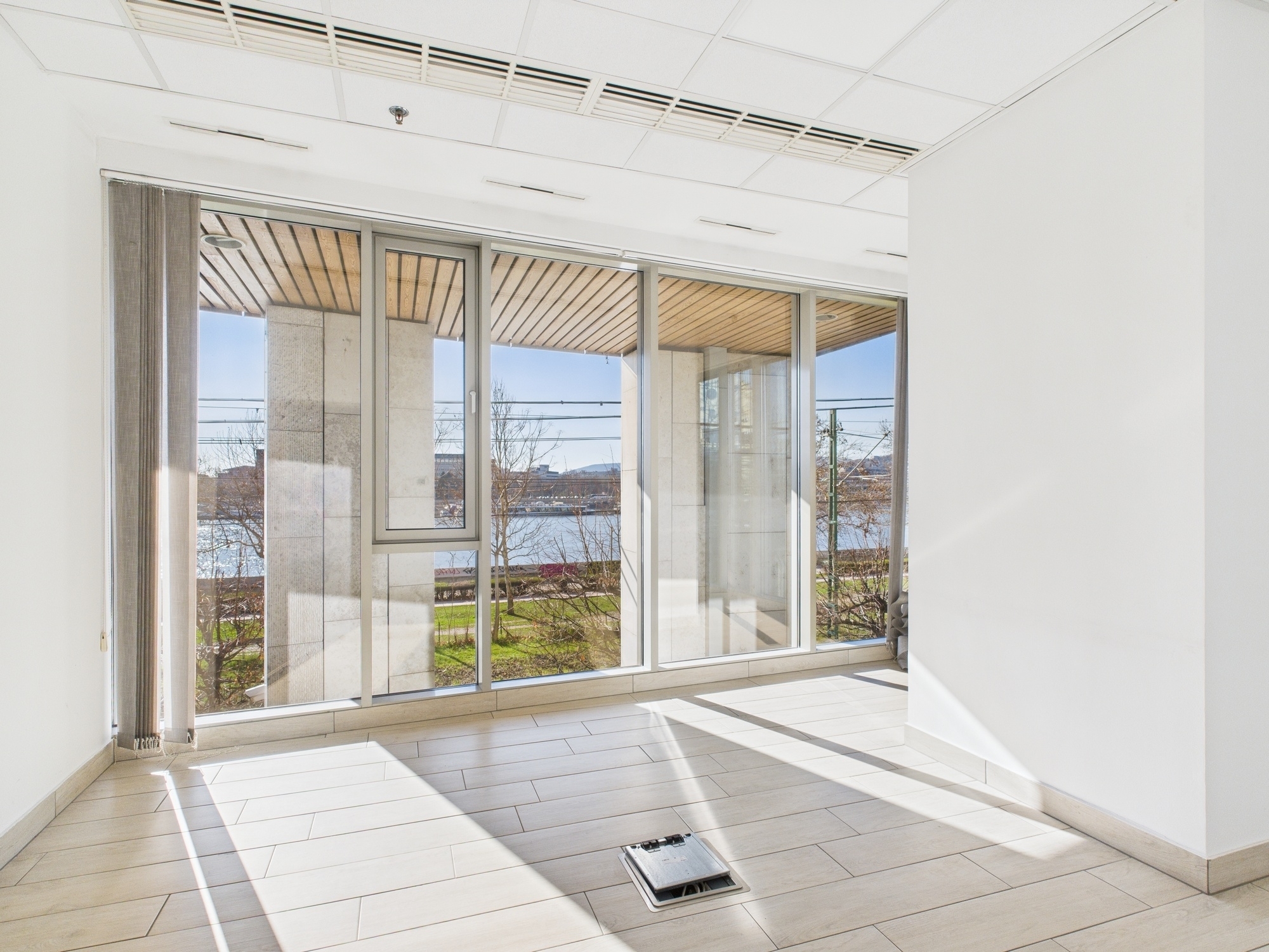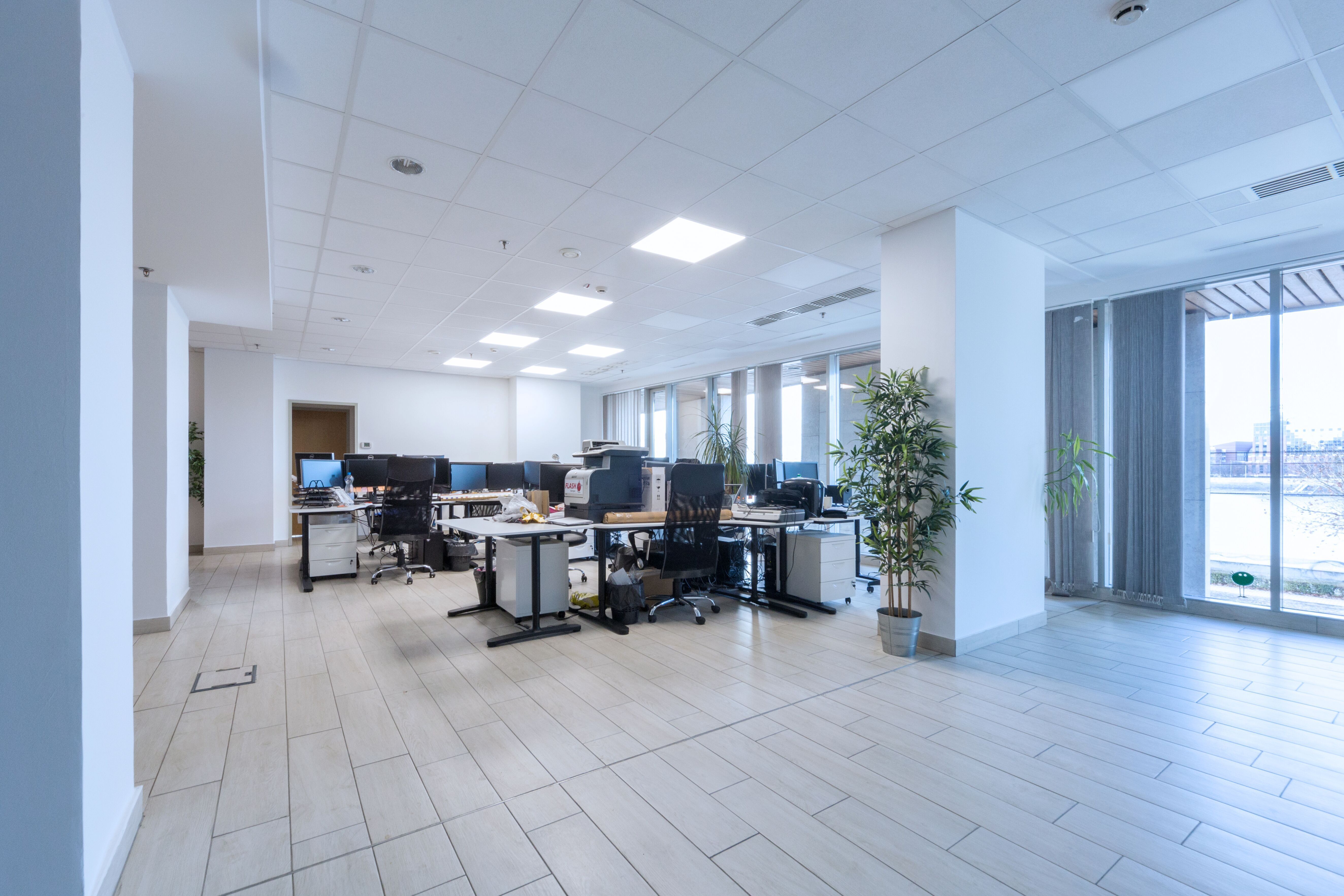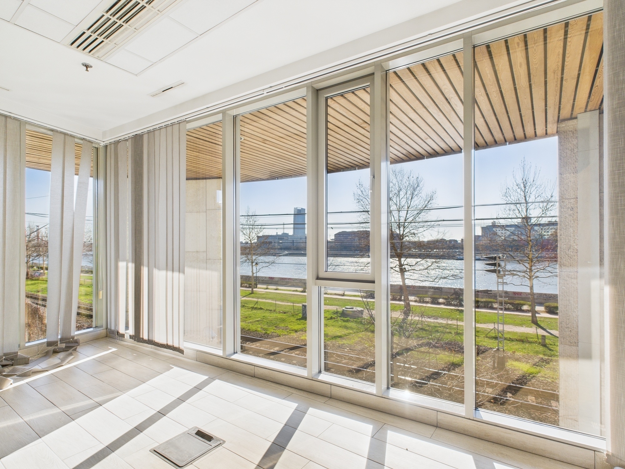 A hirdetésben szereplő dunai panorámás iroda a C lépcsőház első emeletén található, két albetétből került összenyitásra, összesen 170 nm.