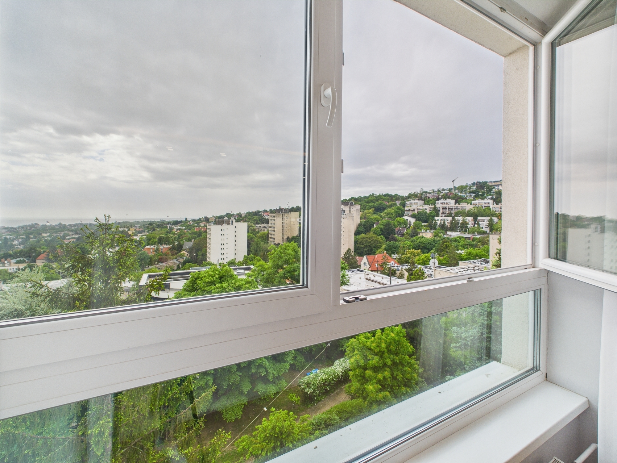 A lakás a harmadik emeleten található, világos, napfényes - a nappaliból a Márton- és a Sashegy zöld lankáira csodás panoráma tárul elénk.