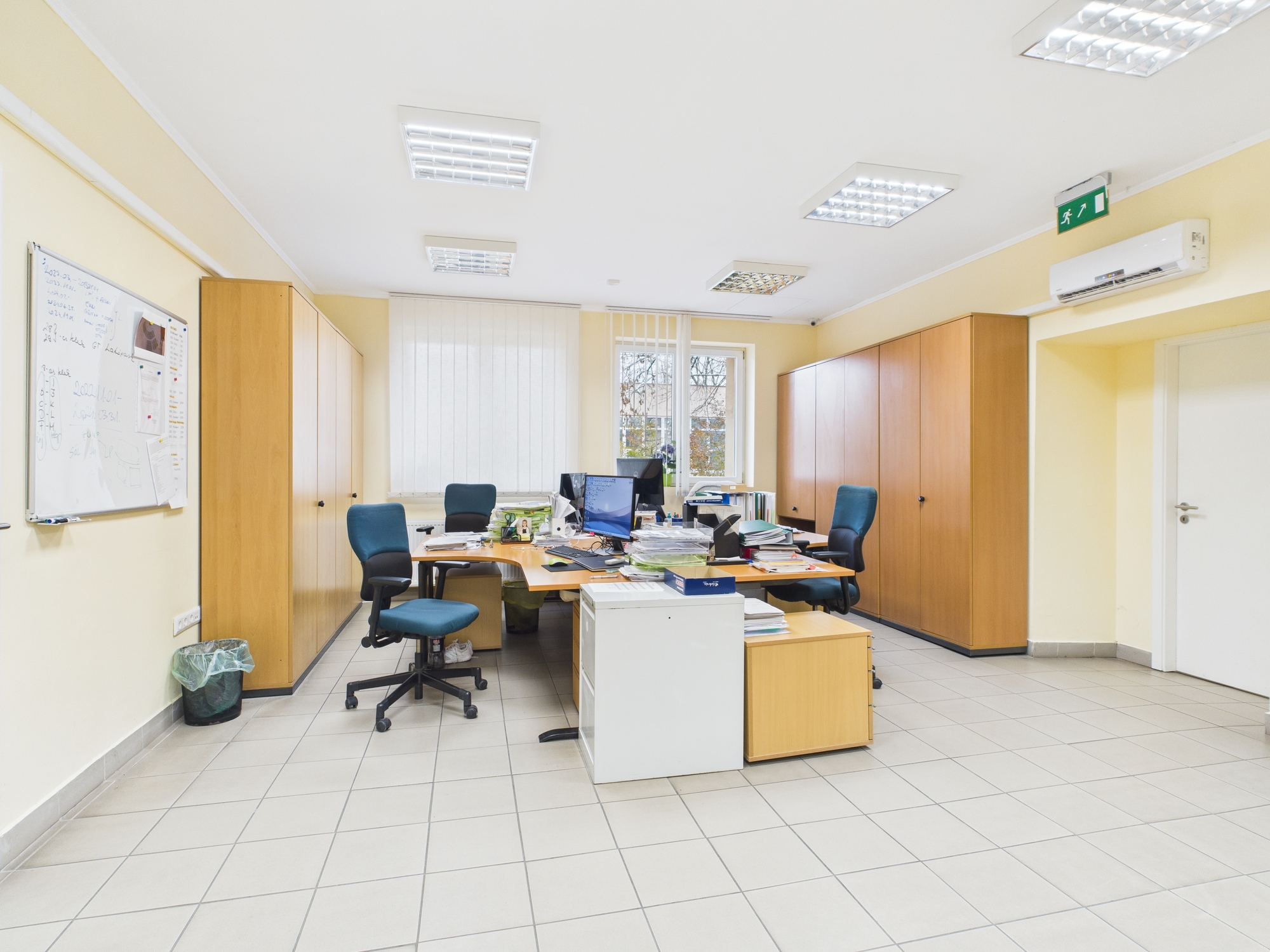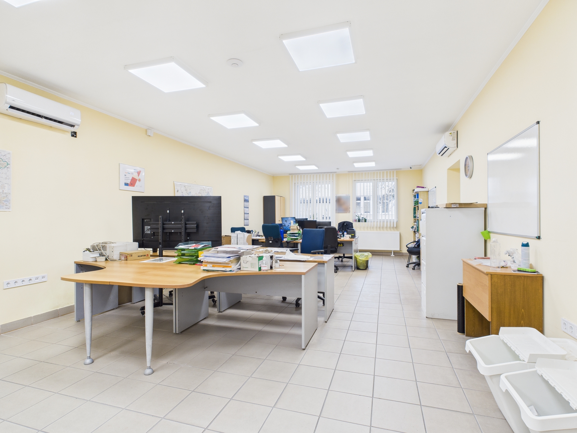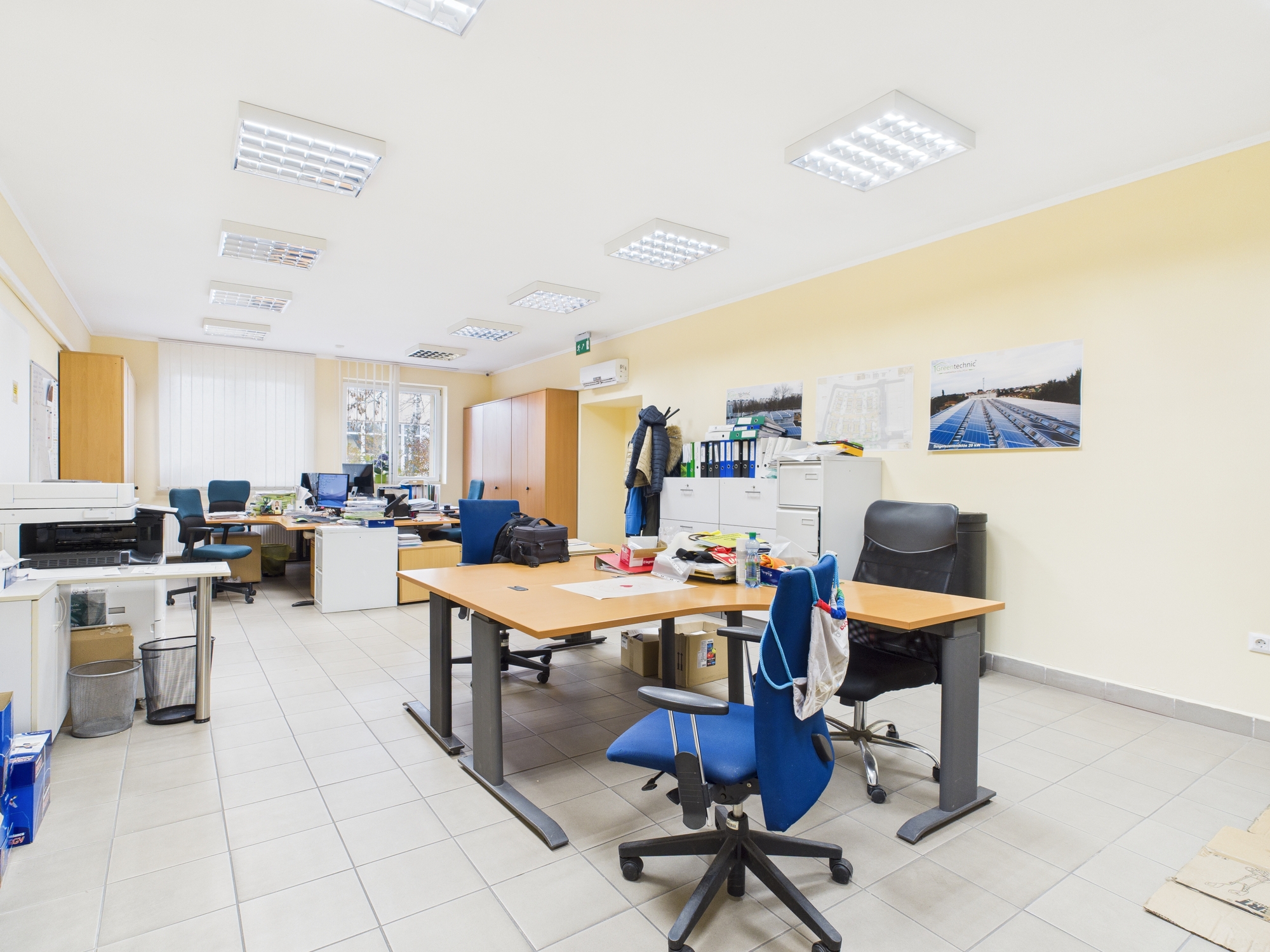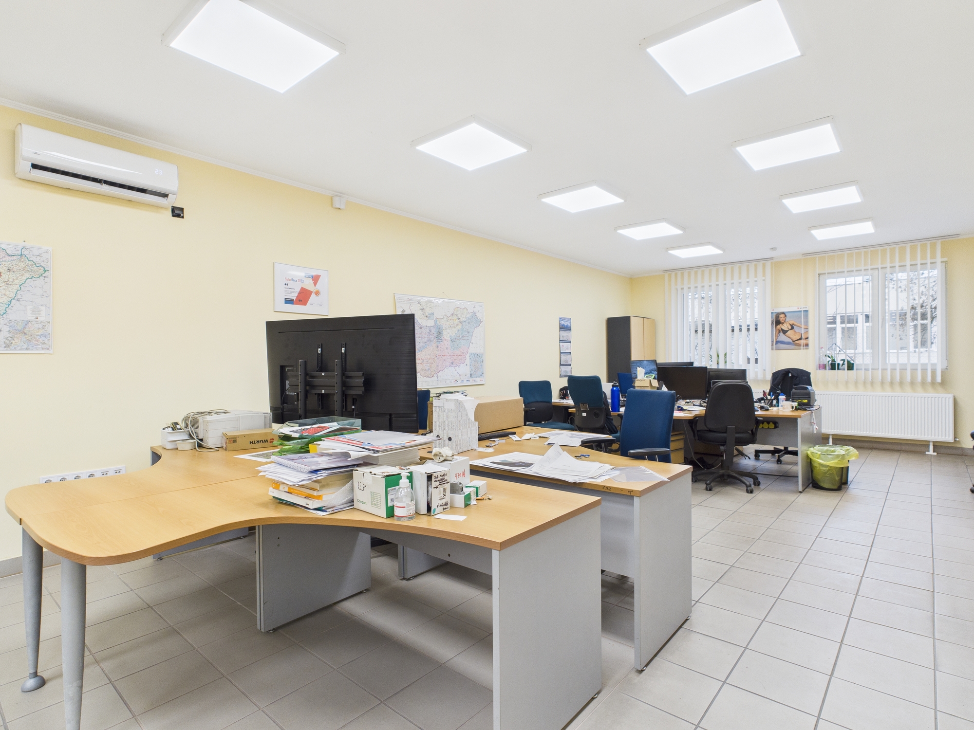 A telephely funkciói alapján jelenleg három fő részre tagozódik: irodák 314 m2, műhelyek/raktárak 1076 m2, munkásszálló 184 m2 (7-15 fő részére). A funkciók könnyedén módosíthatók tekintettel az épület előnyös kialakításának. Az épületben az irodai és a műhely/raktár rész jó állapotban van, a munkásszálló rész felújítandó. Az irodai terület jelenlegi belmagassága 2,8 m, a csarnok magassága 4,2 m.