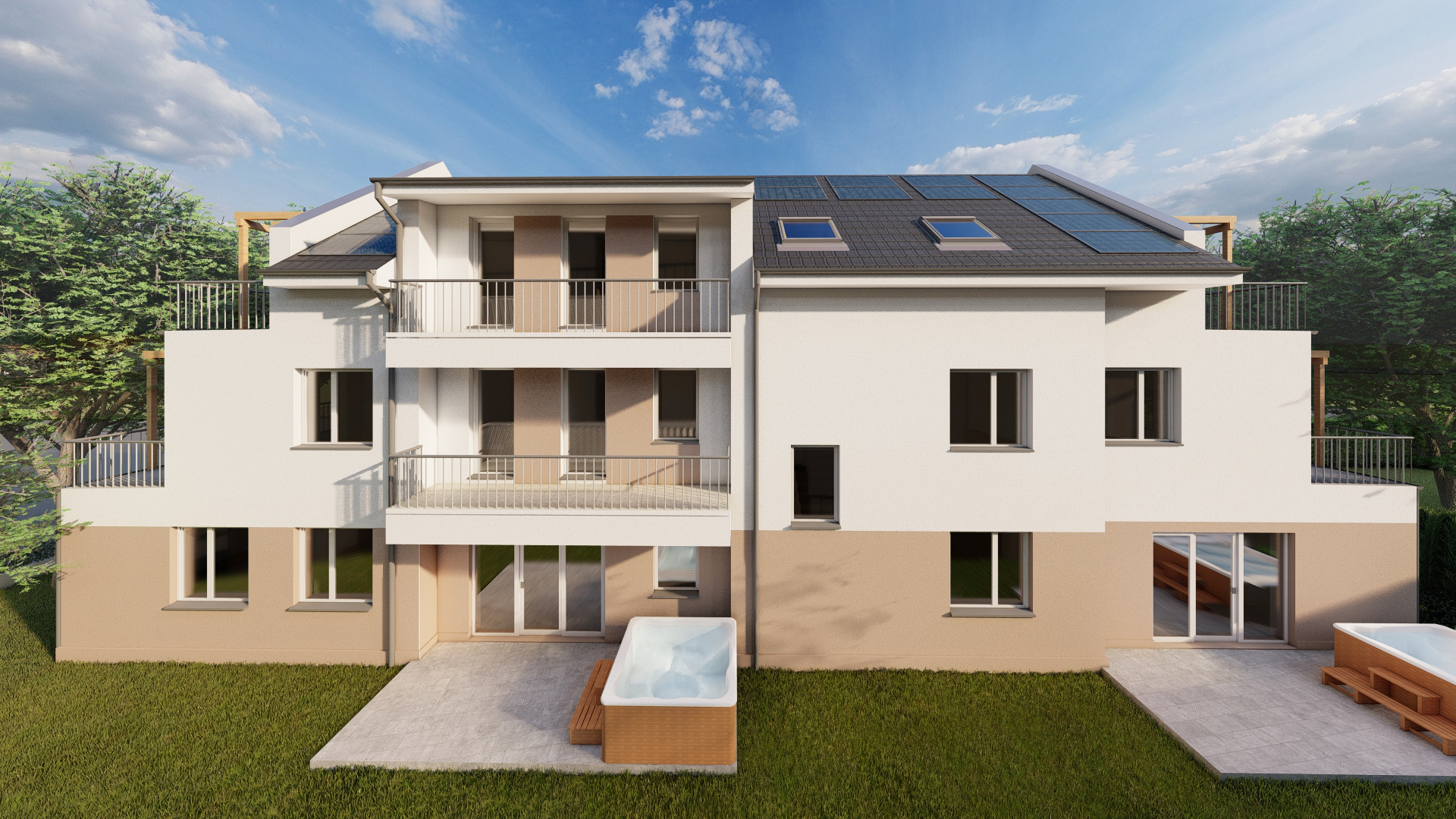 Az épületekben közel nulla energia igényű otthonok kerültek kialakításra (A+). A beruházó tudja milyen kellemetlen, mikor a havi kasszával kell sakkozni a horribilis rezsi költségek miatt – így a saját napelemes rendszerükkel és egyedi hővisszanyerős hűtés-fűtés megoldásaikkal közel nullára szorították az energiaköltséget.